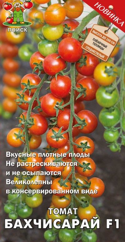 Черри для цельноплодного консервирования. Среднеспелый гибрид для пленочных теплиц. Период от всходов до начала созревания 100-110 дней. Растение высокорослое, высотой до 2 м, требует подвязки и формирования. Плод округлый, гладкий, плотный, оранжево-красный, массой 20-25 г. Рекомендуется для употребления в свежем виде и цельноплодного консервирования. Транпортабельность высокая.