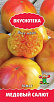 Насыщенный аромат, медовый вкус. Прекрасные двухцветные плоды отлично подходят для нарезки. Среднепоздний сорт для пленочных теплиц. Растение высокорослое, требует формирования и подвязки. Красивые, мясистые плоды плоскоокруглой формы, золотистого цвета с красными пятнами. Масса до 450 г. Для употребления в свежем виде.