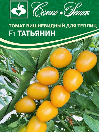 Томат Татьянин F1 - ранний кистевой гибрид для теплиц и открытого грунта, индетерминантный, LSL типа. От всходов до начала плодоношения 80–85 дней. Растение мощное, расстояние между кистями 15-20 см. Соцветие простое , в кисти в среднем 8-10 помидоров. В условиях пониженных температур могут формироваться сложные кисти. Плод томата сердцевидной формы , насыщенного-желтого цвета , очень плотный , массой 25-30 г, устойчив к растрескиванию. Вкус и товарность помидоров отличные. Томат Татьянин F1 устойчив к вирусам томатной мозаики (TоMV), желтого скручивания листьев (TYLCV), вертициллезу (Va, Vd), фузариозу (Fol1–2), кладоспориозу (Ff), и бактериальной пятнистости(Pst). Схема посадки 70х40 см. Урожайность свыше 15 кг/м2. Выращивание в открытом грунте обязательно с подвязкой к опоре.