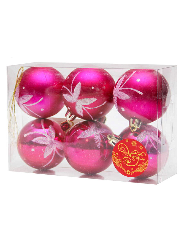 Новогоднее подвесное украшение шар Розовый с серебристой бабочкой 6 см 6 шт 35538