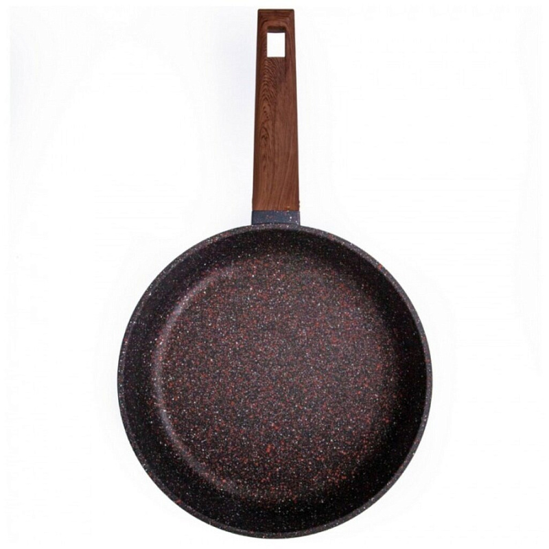 Сковорода для жарки с антипригарным покрытием Greblon C2+. Подходит ко всем плитам, кроме индукционных. Можно использовать в посудомоечной машине.
