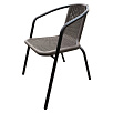 Удобный стул из ротанга подойдет для отдыха на даче. Стул имеет крепкий и устойчивый металлокаркас. Спинка плавно переходит в подлокотники, что обеспечивает удобное положение телу сидящего человека. Практичное, долговечное и простое в уходе изделие.