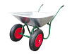 Кузов тачки выполнен из толстого оцинкованного стального листа, борта завальцованы. Два надувных колеса с камерой на подшипниках позволяет легко катить тачку даже по неровной поверхности. Грузоподъемность 120 кг.