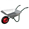 Кузов тачки выполнен из оцинкованного стального листа, борта завальцованы. Усиленная рама состоит из двух частей. Надувное колесо с камерой большого диаметра (400 мм) на подшипниках позволяет легко катить тачку даже по неровной поверхности. Объем корыта 85 л, грузоподъемность 150 кг.