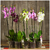 Орхидея Фаленопсис – это травянистое невысокое растение с коротким плотным стеблем, широкими листьями, развитой системой воздушных корней и красивыми большими цветами на длинных гибких цветоносах. В Фаленопсис Микс собраны самые популярные расцветки сорта. В осенний или весенний период из цветовой пазухи вырастает до четырех цветоносов, обычно это происходит дважды в год.