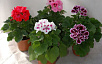 Внешний вид: Куст компактный, высотой 30–50 см. Листья округлые или сердцевидные, слегка гофрированные, тёмно-зелёные, с нежным опушением. Цветки крупные, диаметром 5–7 см, собраны в соцветия-зонтики. Окраска — насыщенные тона: розовая, пурпурная, белая, бордовая, часто с контрастным «глазком» или узором на верхних лепестках. Цветение длится с весны до середины лета.