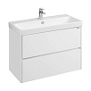 Тумба Сканди 90 выполнена в популярном минималистичном скандинавском стиле. Корпус тумбы выполнен из влагостойкой ЛДСП в белой матовой покраске, а фасады в белой глянцевой покраске. Конструктивно тумба состоит из 2 вместительных ящиков, установленных на направляющие с интегрированной системой push-to-open для комфортного использования. На тумбе нет выступающих деталей и фурнитуры, открытие ящиков реализовано нажатием на фасад. Тумба комплектуется белоснежной раковиной Адриана от бренда Santek. Тумбу по желанию можно использовать в двух вариантах: как подвесную или дополнительно приобрести опоры.