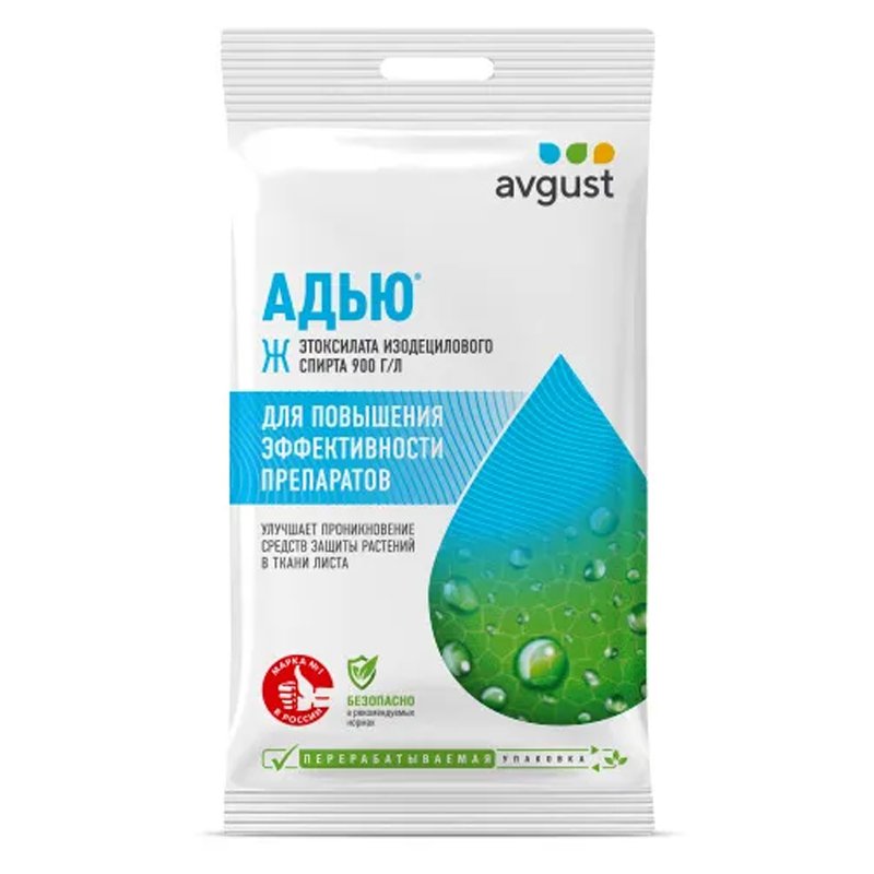 Адью – это активатор ускоренного внедрения средств защиты и удобрений в обрабатываемые растения. Применяется совместно с гербицидами, инсектицидами, фунгицидами, удобрениями и регуляторами роста в целях повышения их эффективности. Увеличивает скорость проникновения препаратов в ткани растений благодаря уменьшению поверхностного натяжения рабочего раствора и увеличению площади растекания, помогает удерживать капли на листе. Особенно актуален препарат для растений с густо опушенными листьями, так как Адью помогает действующему веществу преодолевать барьер из растительных волосков.