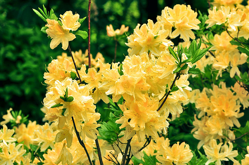 Азалия желтая - среднерослый листопадный кустарник высотой до 1,5 м с умеренным годовым приростом. Хорошо растет в питательной, влажной, дренированной, нейтральной или слабокислой почве, предпочитает полутень. Влаголюбив, при недостатке влаги желательно обеспечить дополнительный полив. Морозоустойчив.