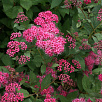 Низкорослый кустарник высотой до 0,5–0,7 м, с полушаровидной кроной и крепкими прямостоячими побегами. Листья продолговато-яйцевидные, тёмно-зелёные, слегка морщинистые, с пильчатым краем, при распускании — красноватые, осенью насыщенно-красного цвета. Цветки ярко-малиновые, собраны в крупные щитковидные соцветия