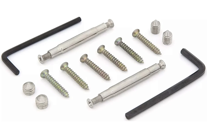 Универсальный набор крепежа для дверных ручек подходит для монтажа межкомнатных и входных ручек Palladium коллекций Revolunion и City на двери толщиной от 35 до 50 мм. В состав комплекта входят: стяжные винты (2 шт.), саморезы (6 шт.), фиксирующие винты (2 шт.), шестигранный ключ (2 шт.).