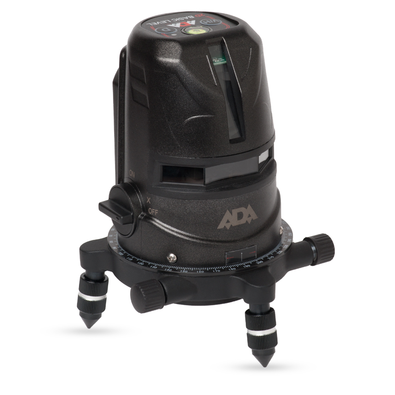 Автоматический линейный лазерный нивелир ADA 2D Basic Level А00239 проецирует горизонтальную и вертикальную линии, а также лазерный отвес. Прибор обладает функцией самовыравнивания. При достижении угла наклона, превышающего диапазон выравнивания, луч начинает мигать и звучит характерный сигнал. Предварительная настройка точности установки осуществляется при помощи пузырькового уровня с подсветкой и встроенного в основание болтов. Основание является поворотным с делениями каждые 15 градусов, что делает возможным наведение вертикального луча в нужную сторону. Специальный индикатор предупреждает о низком заряде батареи.