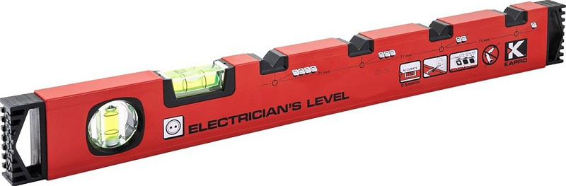 Строительный уровень Kapro 783 поможет не только в проверке ровности вертикальных и горизонтальных поверхностей. На алюминиевом коробчатом профиле изделия имеются четыре специальные насечки с интервалом 71 мм. С их помощью вы легко и точно сделаете разметку для розеток электропитания. А две полиакриловые колбы точно укажут на угловые отклонения.